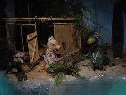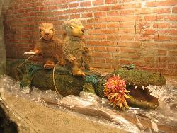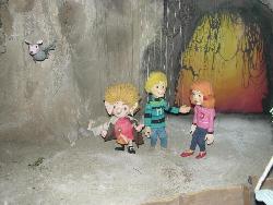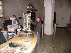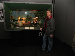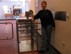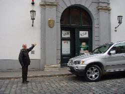 Seit der Eröffnung des Museums 2001 war die Rede davon "da müssen wir mal hinfahren". Nun, 2004, haben wir es doch noch geschafft. Ihr seht hier meinen Mann, Bodo, in der Spitalgasse in Augsburg. Freudig deutet er auf die Eingangstür zur Augsburger Puppenkiste. Da uns die Idee zu diesem Ausflug sehr kurzfristig ereilte, war es für Eintrittskarten zur Vorstellung leider zu knapp. Aber das Museum war "obermegaspitzen- mäßig"! (Die Stadt Augsburg ist auch sehenswert)
