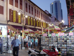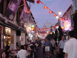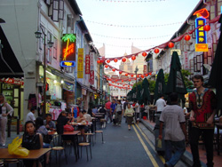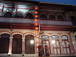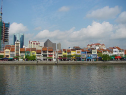 | Bar | hübsche bunte Häuschen am Singapur-River |