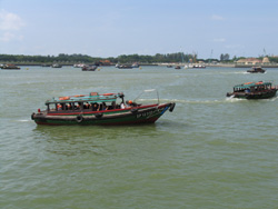 | ...auch liebevoll den Stahligel nennt. | kleine Boote im großen Hafen |