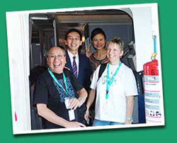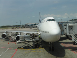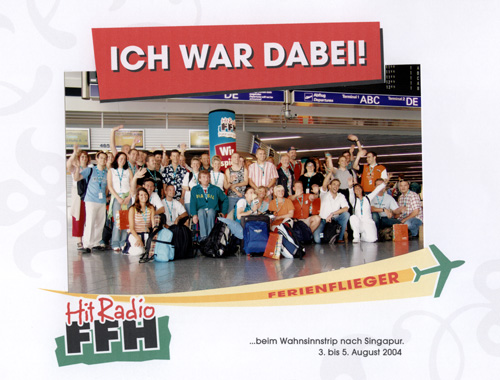 Nie hätten wir gedacht, daß wir beide mitkommen. Nur jeder 50. Anrufer bei FFH hatte die Möglichkeit mitzufliegen! Aber wir steigen hier gerade beide ins Flugzeug ein. Das war super! |